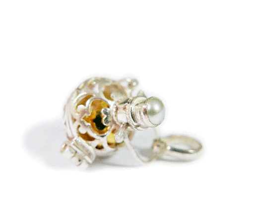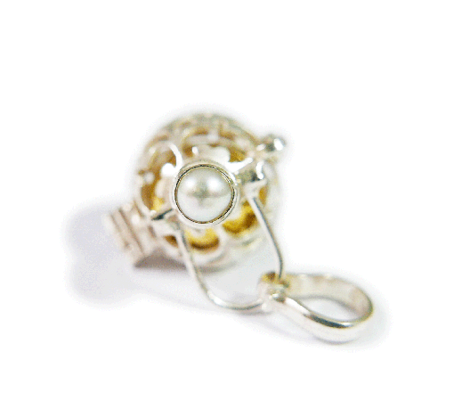 [Silver925]6月の誕生石パール(真珠)のガムランボール(極小SSサイズ/オープンタイプ)★揺らすと癒しの音色のするチャーム★【香水を染み込ませたコットンや天然石を中に入れても素敵です】